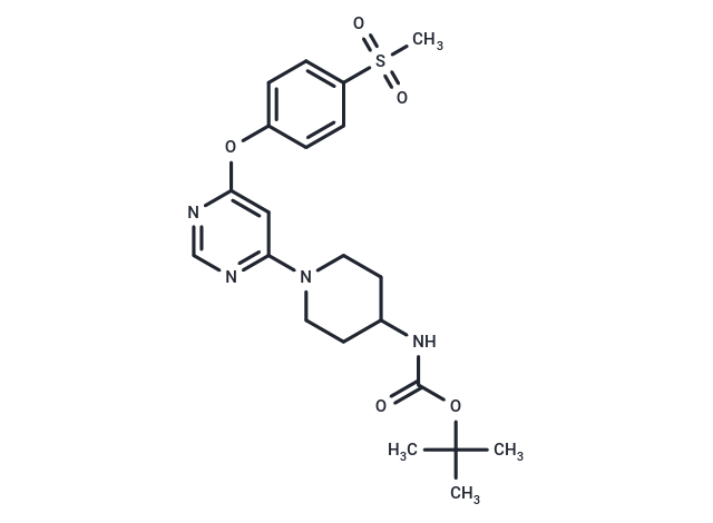 SMILESO(C1=CC(N2CCC(NC(OC(C)(C)C)=O)CC2)=NC=N1)C3=CC=C(S(C)(=O)=O)C=C3