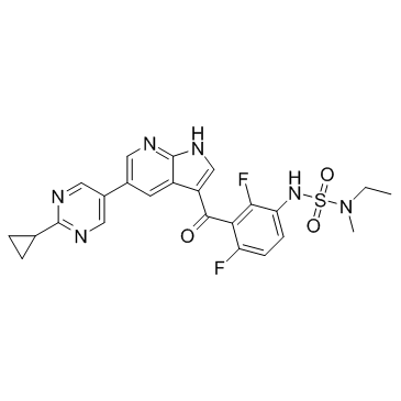 化学全称Sulfamide, N'-[3-[[5-(2-cyclopropyl-5-pyrimidinyl)-1H-pyrrolo[2,3-b]pyridin-3-yl]carbonyl]-2,4-difluorophenyl]-N-ethyl-N-methyl-