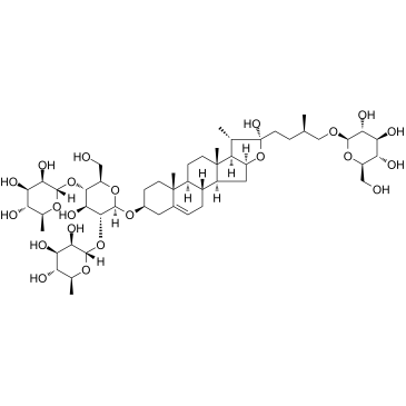 SMILESC[C@H]1[C@H]2[C@H](C[C@@H]3[C@@]2(CC[C@H]2[C@H]3CC=C3[C@@]2(CC[C@@H](C3)O[C@H]2[C@@H]([C@H]([C@@H]([C@H](O2)CO)O[C@H]2[C@@H]([C@@H]([C@H]([C@@H](O2)C)O)O)O)O)O[C@H]2[C@@H]([C@@H]([C@H]([C@@H](O2)C)O)O)O)C)C)O[C@@]1(CC[C@@H](C)CO[C@H]1[C@@H]([C@H]([C@@H]([C@H](O1)CO)O)O)O)O