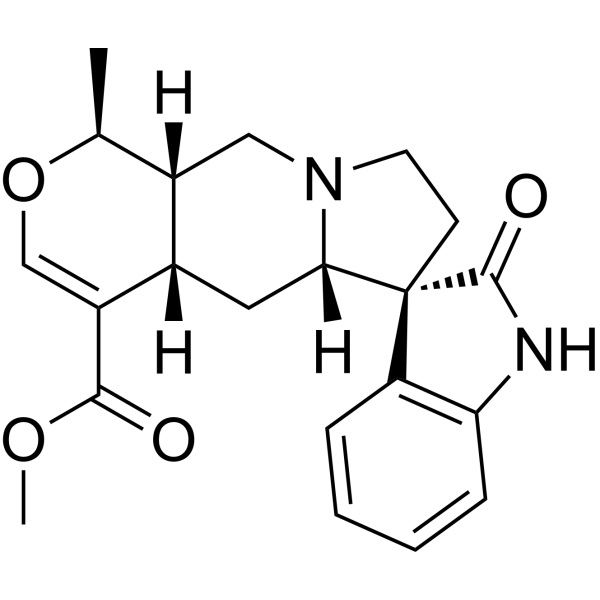 Pteropodine acts as a positive modulator of muscarinic M(1) and 5-HT(2) receptors. Pteropodine shows antigenotoxic, antioxidant and lymphocyte induction effects, it also shows strong apoptotic effect on acute leukaemic lymphoblasts.