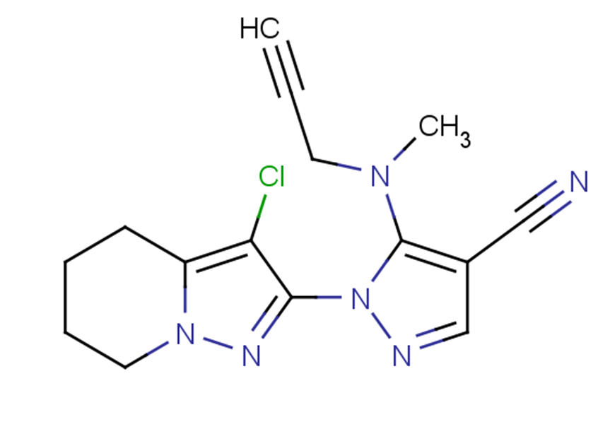 SMILESCN(CC#C)c1c(cnn1-c1nn2CCCCc2c1Cl)C#N