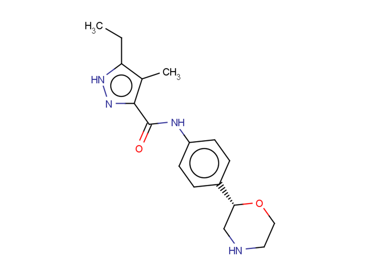 SMILESCCc1c(C)c(C(Nc2ccc([C@@H]3OCCNC3)cc2)=O)n[nH]1