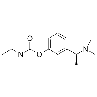 体内实验Rivastigmine (S-Rivastigmine; 0.5-2.5 mg/kg; IP; 60 min before the tests) significantly and dose-dependently improved the behavioral impairments caused by Aluminum (HY-B1521). Rivastigmine (0.5, 1 mg/kg/day; s.c; for 8 days) reduces by about 50% and 60% respectively, the concentration of IL-6 but not those of TNF-α and IL-1β in BALB/c OlaHsd male mice aged 8-9 weeks weighing 200–250 g with acute colitis.Rivastigmine (1 mg/kg), but not (0.5 mg/kg), partially antagonized colon shrinkage and completely prevented bleeding. Treatment with rivastigmine (0.5 mg/kg) causes little change in these pathological manifestations, but rivastigmine (1 mg/kg) causes a partial restoration of the structure of the crypts and a reduction in sub-mucosal edema and cell infiltration. Rivastigmine (1 mg/kg) causes a 4.7% reduction in body weight at the end of the experiment. Animal Model:Male Wistar albino rats weighing 190–240 g (90 days old)Dosage:0.5, 1, 1.5 and 2.5 mg/kg Administration:IP; single dose Result:Significantly and dose-dependently improved the behavioral impairments caused by Aluminum (100 mg/kg/day; i.p.; for 60 days)