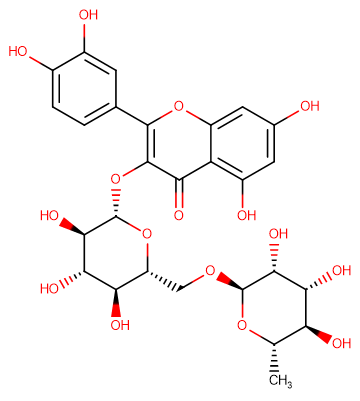 化学全称2-(3,4-dihydroxyphenyl)-5,7-dihydroxy-3-(((2S,3R,4S,5S,6R)-3,4,5-trihydroxy-6-((((2R,3R,4R,5R,6S)-3,4,5-trihydroxy-6-methyltetrahydro-2H-pyran-2-yl)oxy)methyl)tetrahydro-2H-pyran-2-yl)oxy)-4H-chromen-4-one