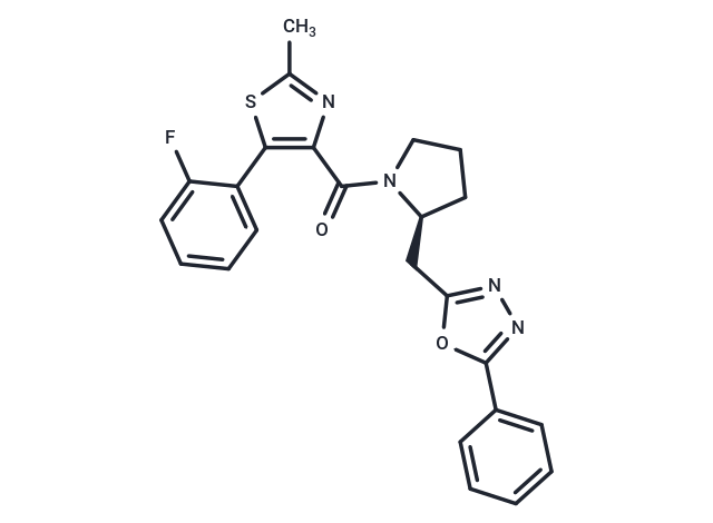 SMILESCc1nc(C(=O)N2CCC[C@H]2Cc2nnc(o2)-c2ccccc2)c(s1)-c1ccccc1F
