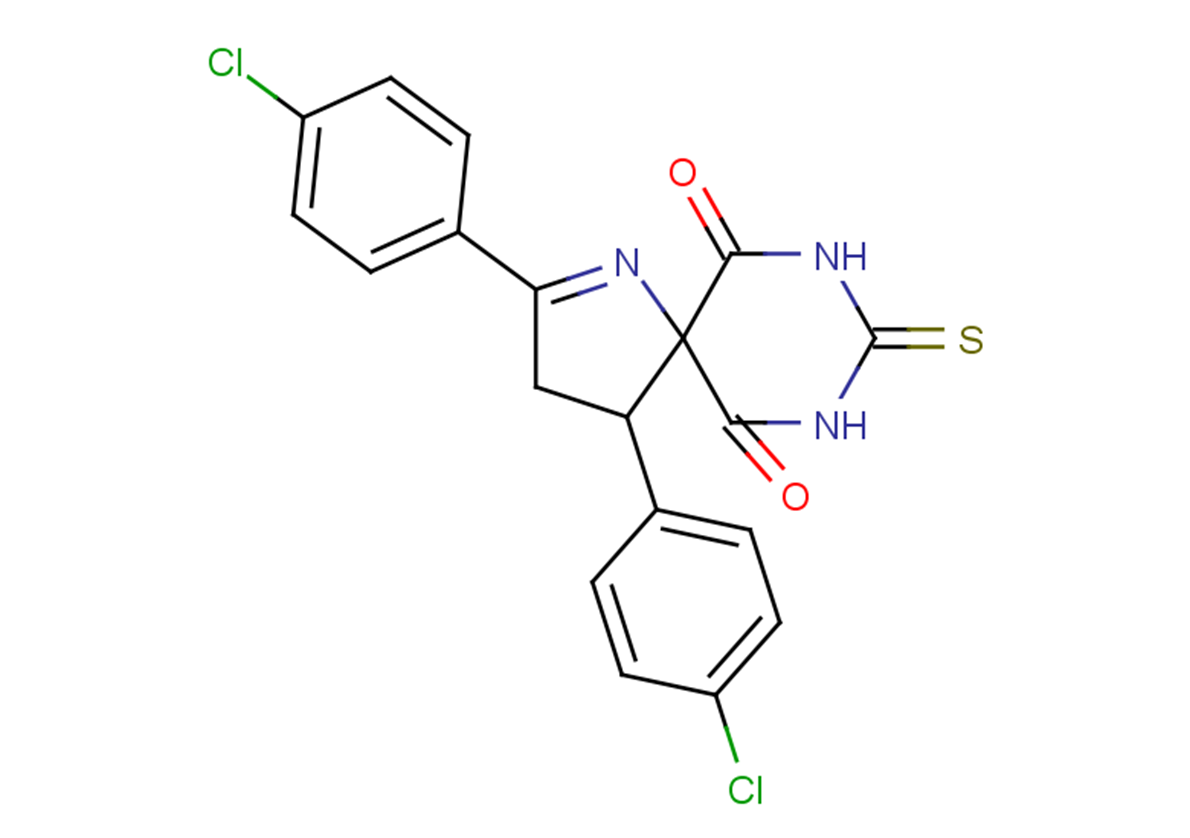 SMILESO=C(NC(NC1=O)=S)C21C(C3=CC=C(Cl)C=C3)CC(C4=CC=C(Cl)C=C4)=N2