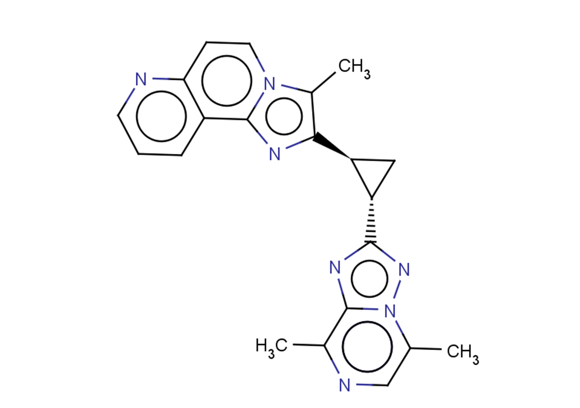 SMILESCc1c([C@@H](C2)[C@H]2c2nn3c(C)cnc(C)c3n2)nc2n1ccc1c2cccn1