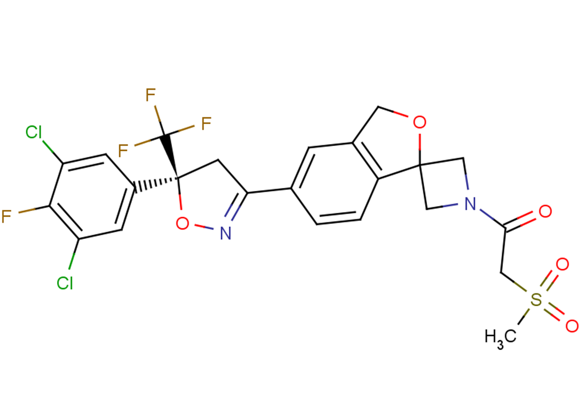 SMILESO=S(CC(N1CC2(OCC3=C2C=CC(C4=NO[C@](C(F)(F)F)(C5=CC(Cl)=C(F)C(Cl)=C5)C4)=C3)C1)=O)(C)=O