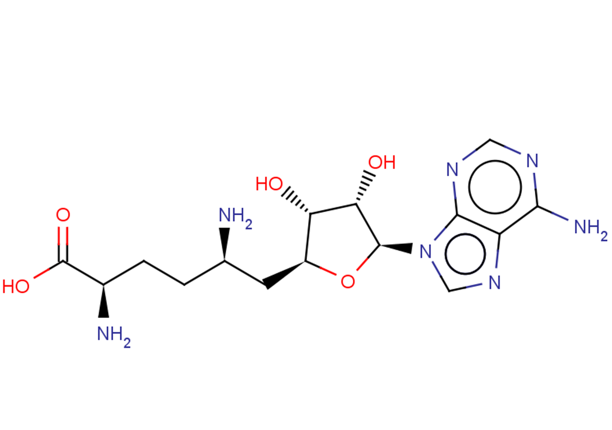 产品描述Sinefungin is an effective inhibitor of virion mRNA(guanine-7-)-methyltransferase, mRNA(nucleoside-2'-)-methyltransferase, and viral multiplication. Sinefungin is a SET7/9 inhibitor and ameliorates renal fibrosis by inhibiting H3K4 methylation.