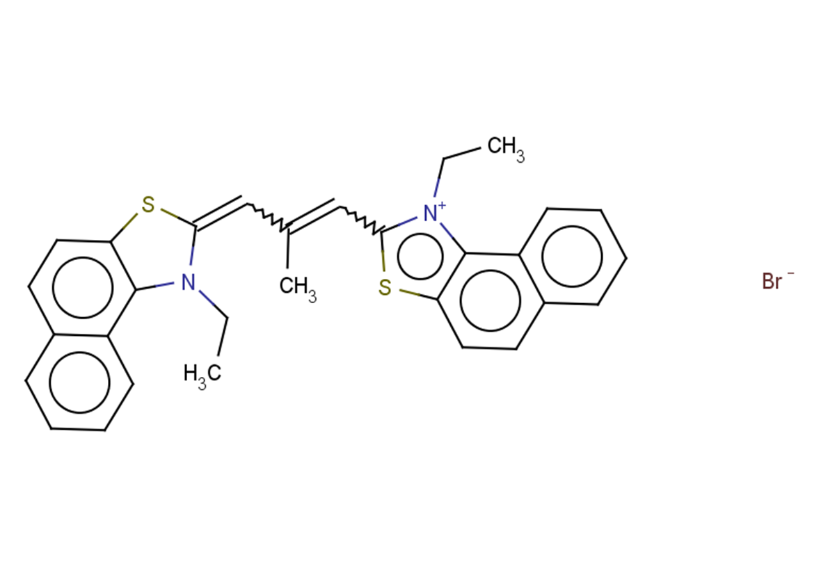 SMILESCCN1c(c2ccccc2cc2)c2SC1=CC(C)=Cc1[n+](CC)c(c2ccccc2cc2)c2s1.[Br-]