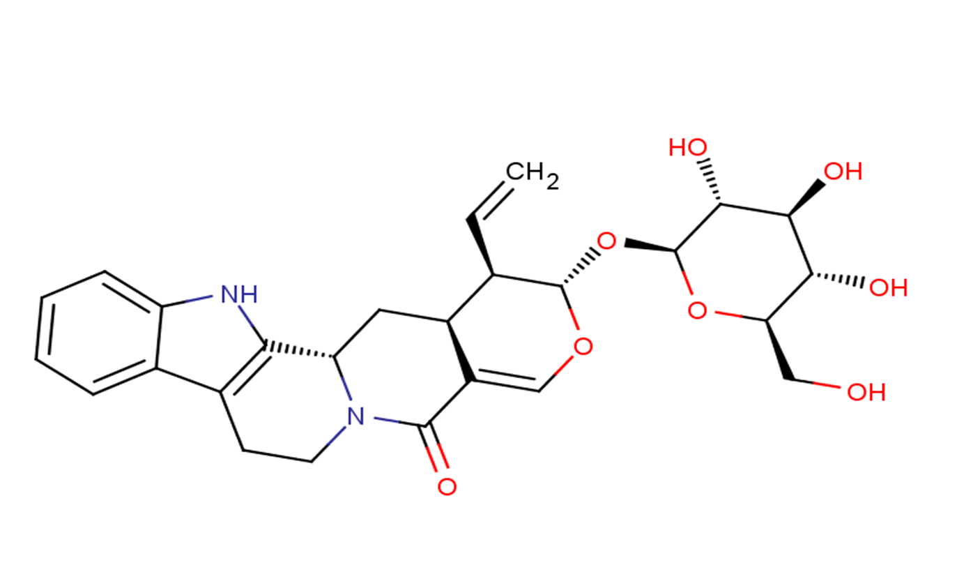 SMILESC=C[C@@H]1[C@@H]2C[C@H]3C4=C(CCN3C(=O)C2=CO[C@H]1O[C@H]5[C@@H]([C@H]([C@@H]([C@H](O5)CO)O)O)O)C6=CC=CC=C6N4