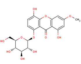 化学全称Xanthen-9-one, 5,8-dihydroxy-1-(beta-D-glucopyranosyloxy)-3-methoxy-