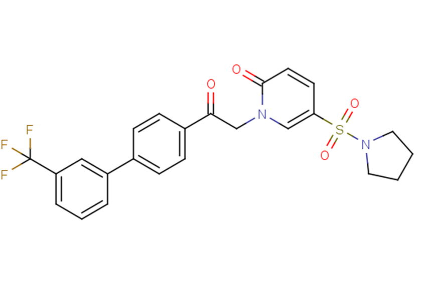 SMILESFC(F)(F)c1cccc(c1)-c1ccc(cc1)C(=O)Cn1cc(ccc1=O)S(=O)(=O)N1CCCC1