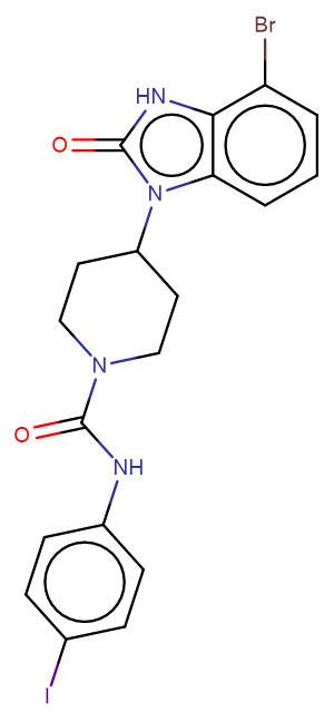 SMILESO=C(Nc1ccc(I)cc1)N1CCC(n2c(=O)[nH]c3c(Br)cccc32)CC1