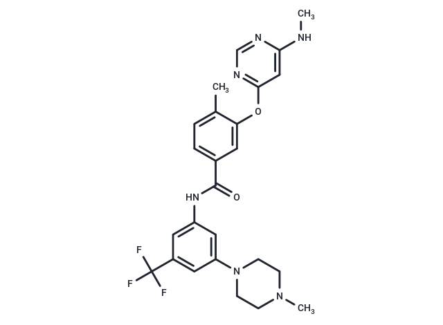SMILESO=C(NC=1C=C(C=C(C1)C(F)(F)F)N2CCN(C)CC2)C3=CC=C(C(OC4=NC=NC(=C4)NC)=C3)C