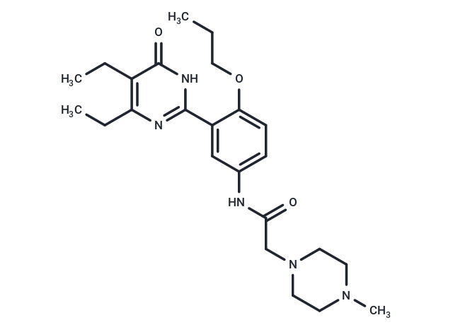 TPN171 是一种有效选择性的、有口服活性的五型磷酸二酯酶 (PDE5) 抑制剂,IC50 值为 0.62 nM,有潜力用于肺动脉高压 (PAH) 的研究。