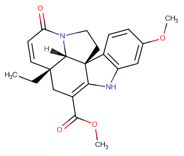 SMILESCC[C@]1(C=CC(N2CC[C@@]34[C@@]21[H])=O)CC(C(OC)=O)=C4NC5=C3C=CC(OC)=C5