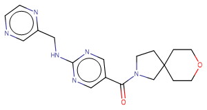 SMILESO=C(c1cnc(NCc2cnccn2)nc1)N1CCC2(CCOCC2)C1