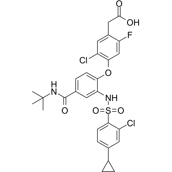 SMILESCC(C)(C)NC(=O)c1ccc(Oc2cc(F)c(CC(O)=O)cc2Cl)c(NS(=O)(=O)c2ccc(cc2Cl)C2CC2)c1