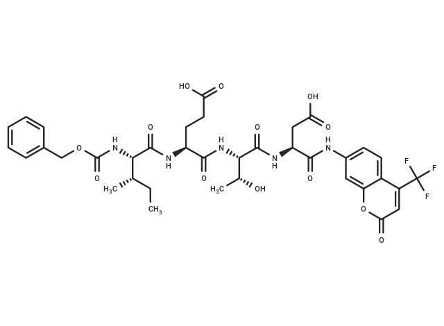 SMILESCC[C@H](C)[C@H](NC(=O)OCc1ccccc1)C(=O)N[C@@H](CCC(O)=O)C(=O)N[C@@H]([C@@H](C)O)C(=O)N[C@@H](CC(O)=O)C(=O)Nc1ccc2c(cc(=O)oc2c1)C(F)(F)F