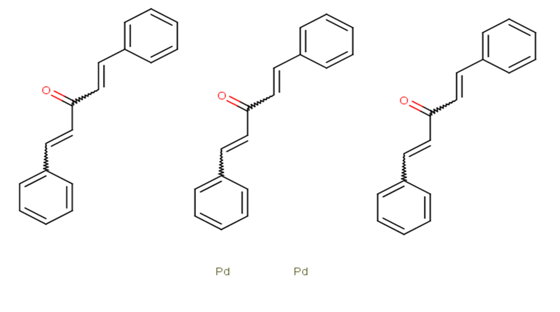 SMILESC1=CC=C(C=C1)C=CC(=O)C=CC2=CC=CC=C2.C1=CC=C(C=C1)C=CC(=O)C=CC2=CC=CC=C2.C1=CC=C(C=C1)C=CC(=O)C=CC2=CC=CC=C2.[Pd].[Pd]